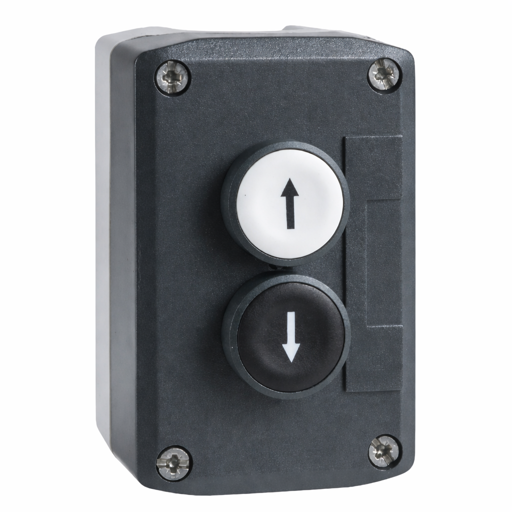 Μπουτονιέρα με πλαστικό κέλυφος βιομηχανικού τύπου δύο πλήκτρων. Είναι κατάλληλη για έλεγχο συρόμενων θυρών, ανοιγόμενων θυρών, ρολών, γκαραζοπορτών, μπαρών ελέγχου κυκλοφορίας αλλά και για έλεγχο κάθε είδους αυτοματισμού. Πρόκειται για μία μπουτονιέρα (χωρίς μανδάλωση) με 2 μπουτόν με αυτόματη επαναφορά με πολύ ανθεκτικό πλαστικό κουτί η οποία μπορεί να χρησιμοποιηθεί τόσο για την δρομολόγηση τάσης (πχ της φάσης μονοφασικού ρεύματος 230 VAC) όσο και για χρήση σε πίνακες ελέγχου με ψυχρές επαφές.